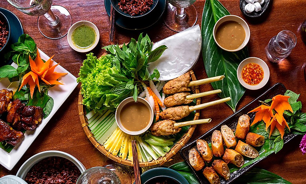 A Vietnamese banquet highlighting char-grilled meats, spring rolls, and various dipping sauces. Image provided by the Michelin Guide. |